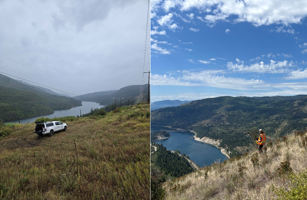 Invasive plant inventory was another crucial task this season. By completing plant inventories across multiple sites, we will build an essential baseline dataset that will guide future restoration efforts. Columbia Power and BC Hydro transmission line inventories kept us busy this summer, and we certainly got our steps in! We also created inventories for the Ministry of Forests, which helps assess the potential impacts of wildfire mitigation strategies on invasive species.
